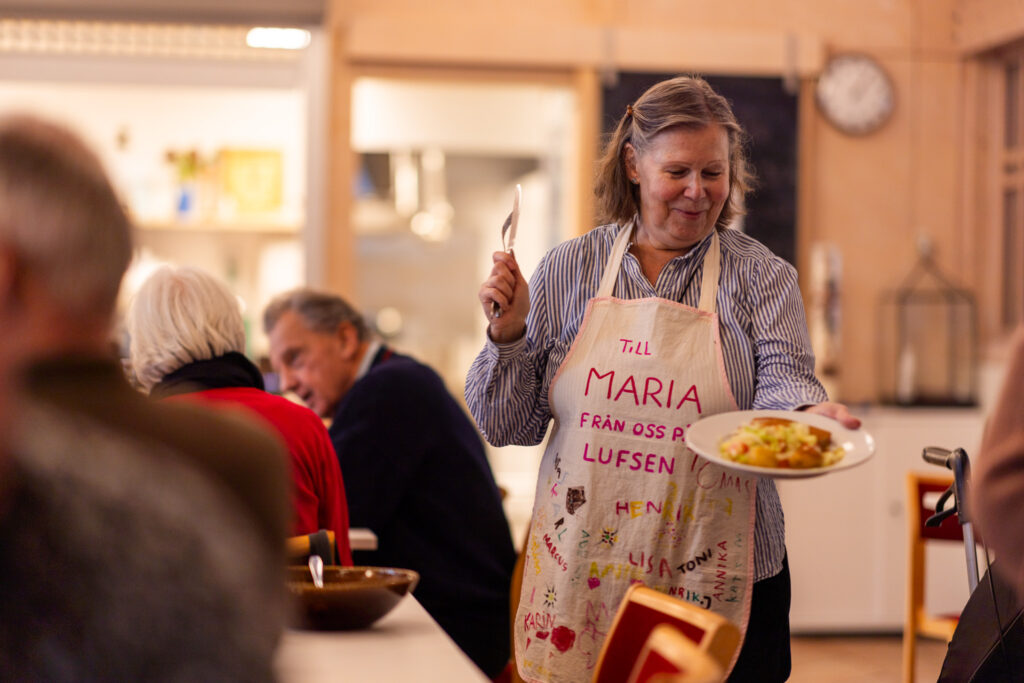 Caritas Skaraborg ordnar flera kvällar i veckan öppet hus för matutdelning til migranter, gemenskap för ensamma och idrottsaktiviteter för ungdomar. Till exempel kan ukrainska familjer som har svårt att leva på dagersättningen från Migrationsverket få extra frukt och grönsaker.