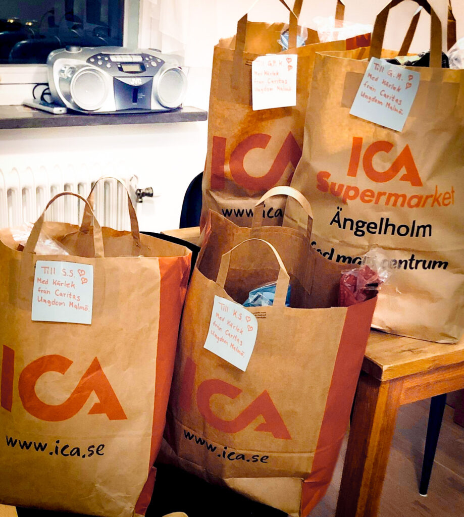 I Vår frälsares katolska församling i Malmö har Caritas Ungdom utvecklat en modell för de som söker ekonomisk hjälp. Efter ett inledande samtal så paras den hjälpsökande – ofta ensamma äldre eller arbetssökande med barn – ihop med två volontärer som sen håller kontakten. Utifrån behov så erbjuds en matkasse och medmänskligt stöd.